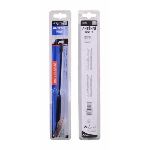 Univerzální anténní prut pro automobilové antény (příjem rozhlasového signálu ve voze). Součástí balení je řada adaptérů pro různé závity (M4,5 / M5 / M6). Barva černá.
