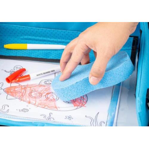 Na obou stranách jsou síťované kapsy, které slouží jako úložný prostor pro tužky a hračky.