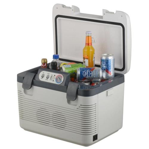 tech-info: Přenosný chladicí box s možností ohřevu, napájení ze zásuvky autozapalovače 12/24 V nebo z běžné zásuvky 230 V, vnitřní objem 19 litrů. Ideální společník na cesty, na dovolenou, na piknik, nebo i na nákupy. Jedná se o dvou ventilátorový systém chlazení neobsahující žádné freony, který umožňuje dosáhnout uvnitř boxu teplotu o 21 – 23 °C pod okolní teplotu (při 25°C). Systém je navíc vybaven i režimem ohřevu, kdy je možné udržovat uvnitř boxu teplotu 50 – 65 °C. Chladicí box je vybaven displejem, který zobrazuje vnitřní teplotu. Vyniká také nízkou hladinou hluku, kterou navíc ještě lze potlačit přepnutím do režimu MUTE, kdy je běh ventilátorů optimalizován tak, aby hladina hluku byla co možná nejnižší.