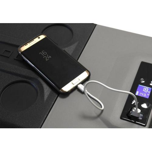 Chladicí box může být napájen 12/24 V z autozásuvky nebo z běžné zásuvky 230 V. Je vybaven výkonným kompresorem s chladicím médiem (R134a) a lze jej použít jak jako chladničku s teplotou 0 – 10°C, tak i jako mrazicí box s teplotou až -20°C. Chladicí box nabízí i režim ECO pro úsporu elektrické energie a Hi mode pro rychlé ochlazení obsahu až k -20°C (při okolní teplotě 25°C). Dále je vybaven inteligentním systémem ochrany před vybitím připojeného akumulátoru a je osazen displejem s tlačítky pro pohodlné ovládání. Díky postranním madlům, vysouvací rukojetí a kolečky z odolného plastu je zajištěna vynikající mobilita. Vnější plášť je proveden z odolných plastů v šedém provedení. Spolu s PU izolací zajišťují dlouhodobé zachování stabilní teploty uvnitř boxu a zaručují velmi nízkou spotřebu energie. Vnější rozměry: 586 x 378 x 475 mm, váha 11 kg.