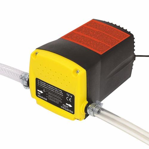 Čerpadlo určené k odsávání oleje, motorové nafty nebo lehkých topných olejů. Napájení 12V pomocí svorek, ideální k připojení na autobaterii 12V. Vhodné pro jednoduchou výměnu motorového oleje. Není nutné hledat vypouštěcí šroub oleje, stačí jen zasunout nasávací sondu do otvoru pro měrku stavu oleje (až do vnitřního průměru 6 mm) a olej vysát do připravené nádoby. Příkon 5A, max. výkon čerpadla: 3 l/min.