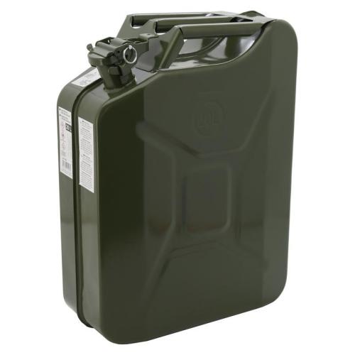 Kovový kanystr na pohonné hmoty o objemu 20l. Hrdlo kanystru je opatřené uzavíratelným mechanismem se zátkou, těsněním a jištěním proti otevření. Profilované boky kanystru zajistí pevný tvar, nedochází tak k prohýbání stěn vlivem tlaku. Kanystr je na vrchní straně opatřen praktickou rukojetí usnadňující manipulaci. Povrch kanystru je tradičně zeleno-olivově nabarven, materiál je tak ochráněn před korozí. Rozměr: 360 x 460 x 160 mm.