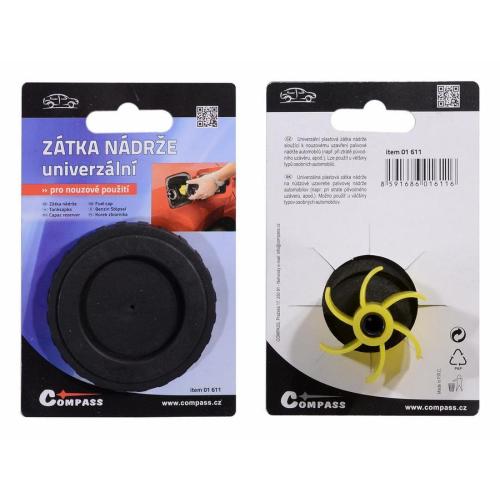 Univerzální plastová zátka nádrže sloužící k nouzovému uzavření palivové nádrže automobilů (např. při ztrátě původního uzávěru). Lze použít u většiny typů osobních automobilů.