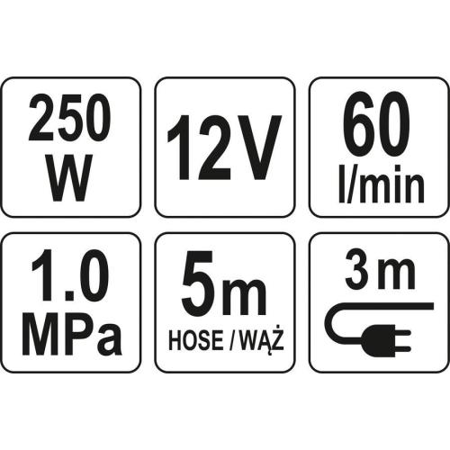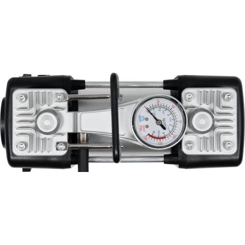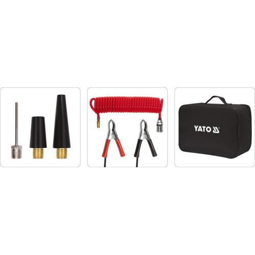 Výkonný kompresor s přesným manometrem, napájením na 12V a s LED svítilnou. Určeno pro nafukování pneumatik vybavených ventilem v automobilech, motocyklech a jízdních kolech a - s použitím výměnných špiček - matrace, pontony, míče. Délka přívodního kabelu 300 cm, délka hadice 500 cm, max. tlak 1 MPa, průtok vzduchu 60 l/min.