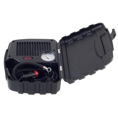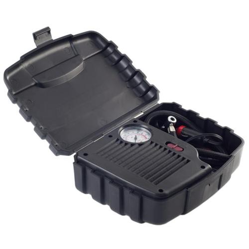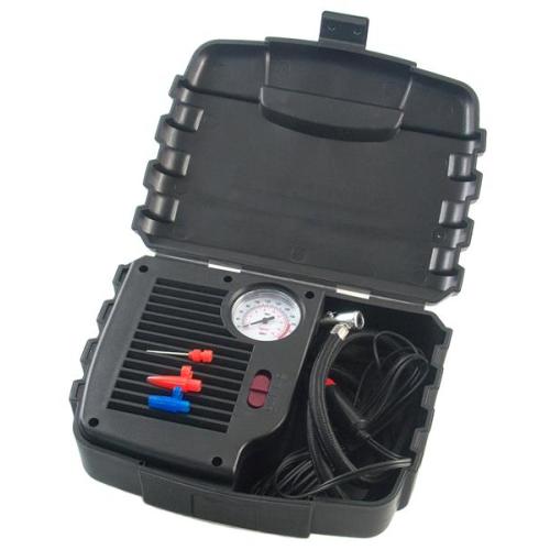 Kufříkový kompresor je skvělým pomocníkem při nafukování pneumatik aut a jízdných kol, sportovního vybavení a mnoha dalších předmětů. Díky kufříkovému typu konstrukce je kompresor velmi skladný a snadno se tak vejde například do příhrádky v kufru vašeho vozidla. Součástí kufříku jsou také praktické nástavce, díky kterým nafouknete opravdu téměř cokoliv. Napájení kompresoru probíhá z 12V zásuvky zapalovače v autě.