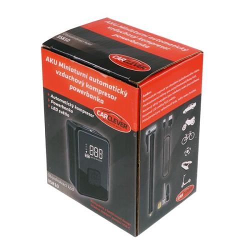 AKU Miniaturní automatický vzduchový kompresor / powerbanka Miniaturní kompaktní bateriový vysokotlaký kompresor. S tímto pomocníkem není problém nafouknutí jakéhokoliv kola.