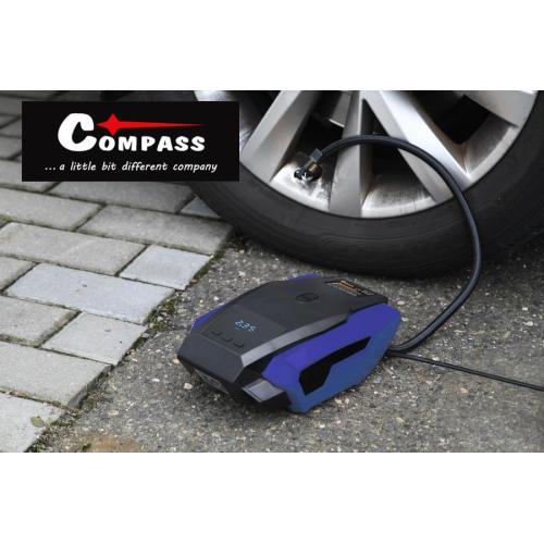 Vysoce výkonný kompresor s Auto-stop systémem a napájením z 12V zástrčky autozapalovače vozidla. Kompresor je vhodný k huštění pneumatik osobních automobilů, motocyklů, či jízdních kol na přesně nastavené hodnoty. Součástí balení jsou však i adaptéry pro různé další použití (huštění míčů, matrací, bazénů atp). Kompresor je vybavený vestavěným pneuměřičem a ovládacím panelem, který zobrazuje naměřený tlak na digitálním displeji v několika jednotkách. Ovládací panel umožňuje nahuštění na předem nastavenou hodnotu. Napájecí kabely i hustící hadice mají dostatečnou délku : 12V - 2,5 m / vzduchová hadice 0,5 m. Pro snadnější skladování lze hadici i téměř kompletní kabeláž umístit do vnitřní přihrádky zařízení. Max. tlak 10,3 BAR (150PSI), příkon 120W (max.10A), výtlak 37 L/min.