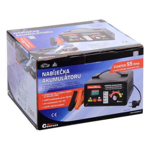 - Nabíječka akumulátorů s funkcí přímého startování vozu. Funkce STARTER 55A umožňuje nastartovat vozidlo s vybitou baterií tak, jako kdyby bylo startováno pomocí startovacích kabelů z jiného vozidla. Nabíječka umožňuje rychlé nebo pomalé nabíjení a je určena pro olověné akumulátory. Technická data: