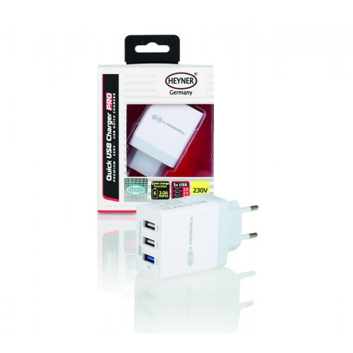 Nabíječka HEYNER 230V USB (3xzás.) bílá 511670