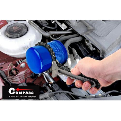 Univerzální řetězový klíč pro montáž a demontáž většiny typů olejových filtrů. Materiál kov.