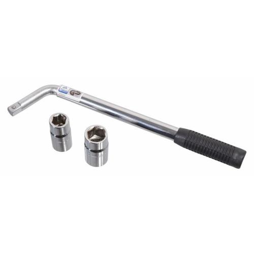 Teleskopický kovový klíč ve tvaru písmene L, s nástavcem 17/19 a 21/23 mm. Určeno pro povolování nebo utahování šroubů a matic kol. Výsuvná délka až na 51 cm - delší rameno zjednodušuje povolování a utahování. Homologace TÜV/GS.