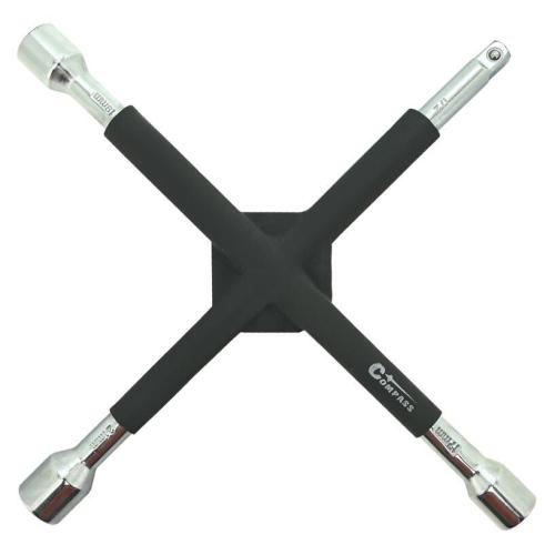 Celokovový klíč ve tvaru kříže se zesílenou konstrukcí a možností připojení ráčny, určený pro povolování či utahování matic kol automobilů. Na jednotlivých stranách je osazen nástavci pro utahování a povolování matic či šroubů kol o rozměrech 17, 19, 21 mm. Čtvrté zakončení je uzpůsobené pro připojení klíče/ráčny velikosti 1/2" a významně usnadňuje povolení zatuhlých, či silně dotažených šroubů. Klíč je vyroben z kvalitní oceli, s výrazným pogumováním střední části pro pohodlnou manipulaci.