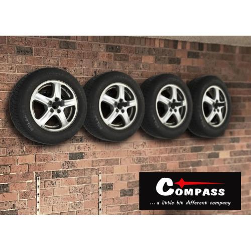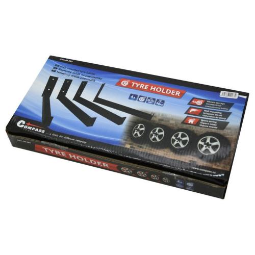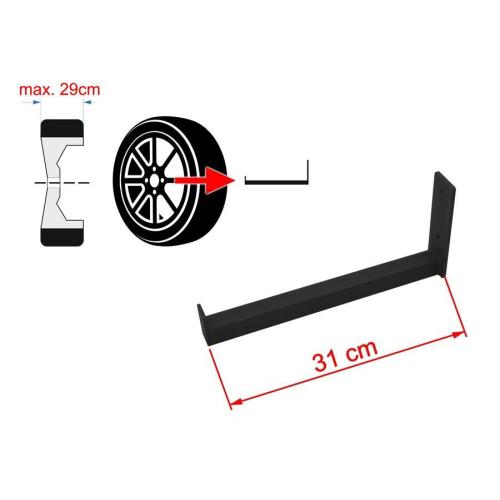 Sada 4 držáků pneumatik určených k montáži na stěnu. Díky zavěšení pneumatik významně ušetříte místo. Ocelový držák má nosnost 30kg a je uzpůsoben pro umístění disku s pneumatikou o maximální šířce 290 mm. Disk se na držák umísťuje za středový otvor. Pro zamezení poškrábání disků jsou součástí balení samolepící pěnové chrániče. Jednotlivé držáky se uchytí na pevnou stěnu pomocí šroubů s hmoždinkami. Stěna musí být dostatečně pevná, schopná unést hmotnost pneumatik včetně disků.