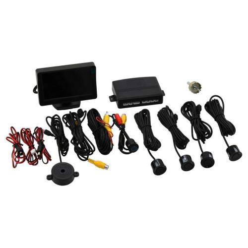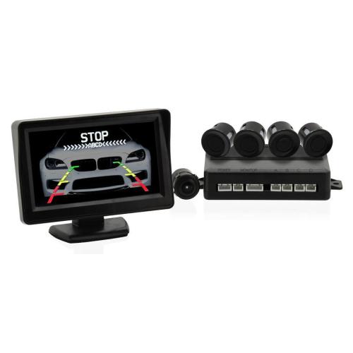Parkovací asistent s kamerou a LCD displejem pro přesné a komfortní vizuální zobrazení vzdálenosti od překážky. Funguje na principu ultrazvukových vln přenesených pomocí senzorů v zadním nárazníku a snímáním prostoru za vozidlem pomocí kamery. Aktivuje se zařazením zpátečky. Podle informací na displeji a pípání zvukového signálu je řidič informován o vzdálenosti od překážky. Systém řidiči pomáhá bezpečně parkovat a navíc zobrazuje aktuální obraz za vozidlem. Balení obsahuje LCD displej, řídící jednotku, zvukový modul, kameru a 4 senzory pro montáž do zadního nárazníku, odpovídající kabeláž a vrtáky odpovídajích průměrů. LCD Displej (NTSC/PAL) s úhlopříčkou 4,3" je napájen z řídící jednotky parkovacího asistenta. Sledovaný obraz má rozlišení 800 x 480 px s poměrem stran 16:9. Obraz je doplněn o potřebné ukazatele a informace o vzdálenosti překážek. Úhel snímání: vertikálně 60°, horizontálně 120°.