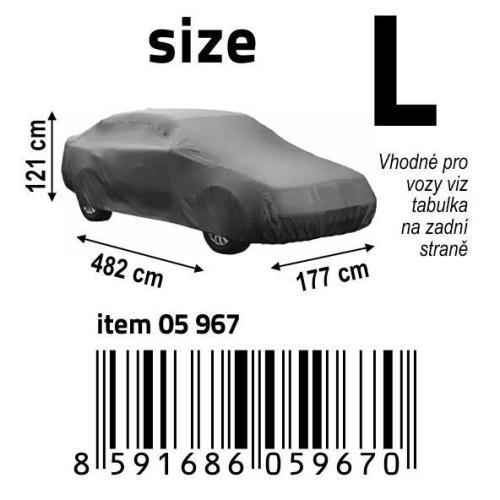 Prodyšná plachta (materiál NYLON) optimálně zabraňuje tvoření námrazy na sklech automobilu. Chrání karoserii proti znečištění a UV záření. Jednoduché univerzální upevnění pomocí všité gumy. Baleno v praktickém, na zip uzavíratelném balení, do kterého lze plachu po použití snadno složit a uskladnit. Tabulka použití je na zadní straně balení.
