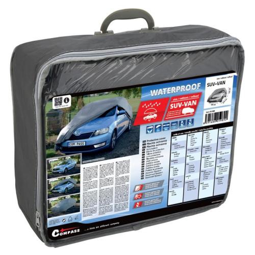 Ochranná plachta na celý vůz, vyrobeno z velmi odolného nepromokavého materiálu. Na vnitřní straně opatřeno vrstvou, které je šetrná k laku vozidla. Plachta je ideální proti znečištění vozu, zabraňuje i a námraze. Jednoduché univerzální upevnění. Baleno v praktickém, na zip uzavíratelném balení, do kterého lze plachu po použití snadno složit a uskladnit.