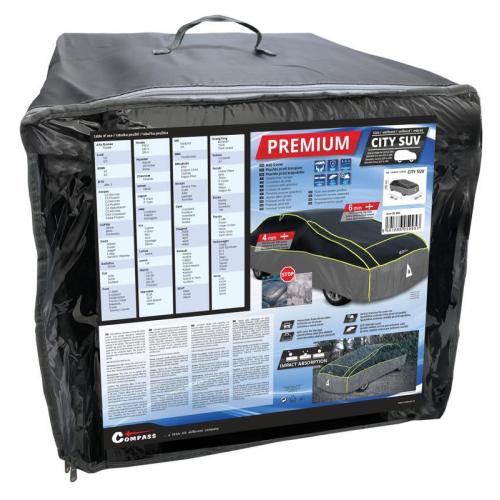 Použitím prémiové ochranné plachty dopřejete svému vozidlu špičkovou ochranu proti krupobití. Plachta zajistí maximální ochranu díky své zesílené, vrstvené konstrukci. Horní část je opatřena 6 mm ochranným polstrováním, které spolehlivě pohlcuje nárazy krup o průměru až 17 mm letících rychlostí 96 km/h. Oproti jiným plachtám jsou plachty Premium opatřeny 4 mm polstrováním rovněž na bocích, takže chrání vozidlo prakticky ze všech stran. Vnitřní povrch je navíc doplněn měkkou podšívkou, která chrání karoserii před vznikem škrábanců. Plachtu stačí přetáhnout přes celé vozidlo a zafixovat za spodní hrany nárazníků, či vhodné záhyby karoserie. Pro pevné zajištění plachty slouží 3x stahovací popruhy s klipem (vepředu, vzadu a uprostřed vozu). Plachta se snadno udržuje v čistotě. V případě potřeby ji stačí opláchnout vlažnou vodou a houbou. Součástí je rovněž praktické, na zip uzavíratelné balení, do kterého lze plachtu po použití snadno složit a uskladnit. Velikost plachty lze snadno zvolit pomocí tabulky a označení na obalu.