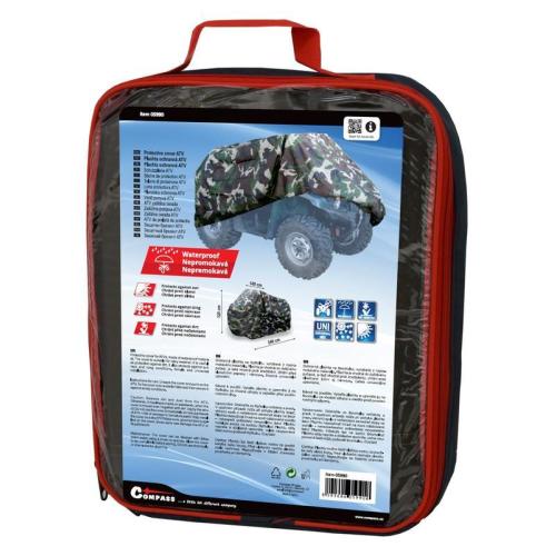 Ochranná plachta vyrobená z velmi odolného nepromokavého materiálu. Plachta je ideální proti znečištění čtyřkolky, zabraňuje i a námraze. Jednoduché univerzální upevnění. Baleno v praktickém, na zip uzavíratelném balení, do kterého lze plachtu po použití snadno složit a uskladnit. Jednoduché upevnění plachty - pouze se nasadí na čtyřkolku, na spodku se upevní část s všitou gumou za vhodné záhyby. Přední i zadní část plachty je osazena pevnými poutky, pomocí kterých lze plachtu ještě pevněji upevnit, například gumotahy apod (nejsou součástí dodávky).