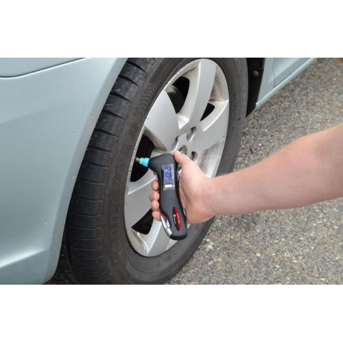 Digitální pneuměřič s celou řadou bezpečnostních doplňků pro nouzové použití např. při dopravní nehodě. Ideální kombinace pomocníků na cesty, doporučujeme vozit stále v autě, například v kapse dveří řidiče. Budete tak mít všechny potřebné nástroje vždy po ruce. Základní vlastnosti: digitální pneuměřič s podsvětleným displejem, svítilna s bílým světlem, svítilna s červeným světlem, kladívko pro nouzové rozbití skla, chráněné ostří nože pro rychlé přeřezání bezpečnostních pásů.