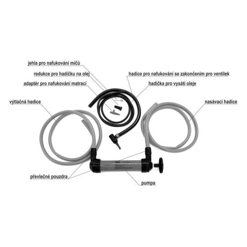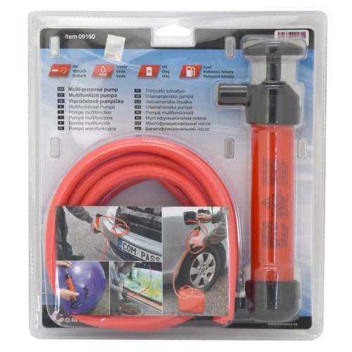 Multifunkční pumpa vhodná jak k nafukování, tak i k přečerpávání kapalin. Balení obsahuje multifunkční pumpu, 2x nasávací / hustící hadici, hadičku pro odsávání motorového oleje, hadičku pro huštění kol a adaptéry. Pumpička se dá využít při několika různých činnostech, díky přiloženým adaptérům. Je snadné nahustit matraci, bazén, jízdní kolo, či fotbalový míč, nebo je možné pumpu použít pro přečerpání kapaliny - ať již k vyčerpání vody z akvária, tak i k přečerpání nafty, ale dokonce i k odsátí oleje z motoru.