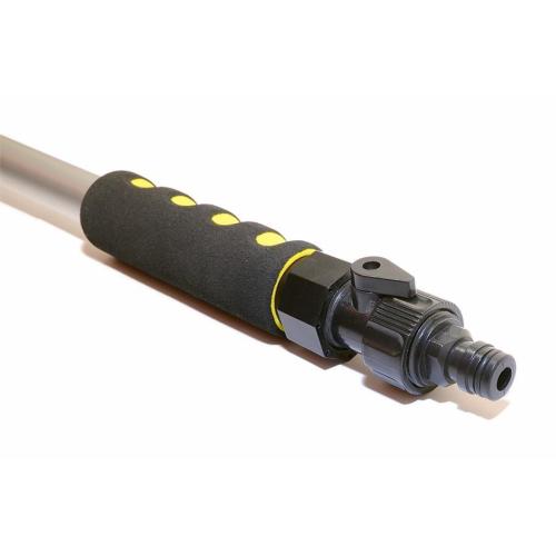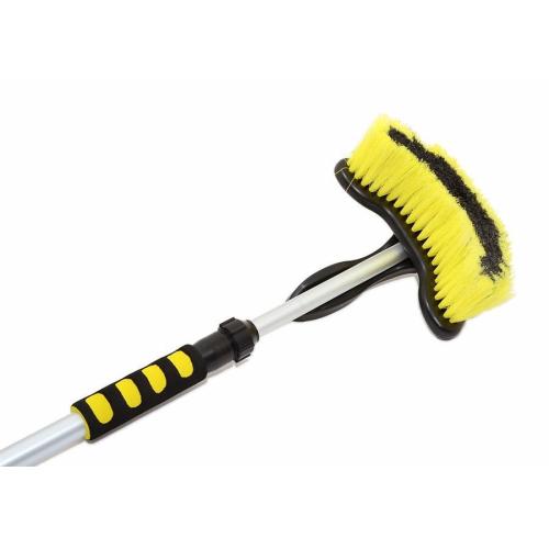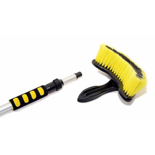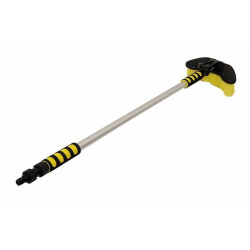 Teleskopický kartáč o délce 105 - 170 cm s průtokovým mycím kartáčem. Připojení na hadici s vodou pomocí klasické hadicové rychlospojky, uzávěr vody přímo na kartáči (u spojky připojení hadice). 2 pohodlné pěnové úchyty pro příjemnější práci, samotný kartáč lze oddělit od teleskopické tyče a použít jej samostatně. Délka štětin kartáče 6 cm. Hliníková konstrukce.
