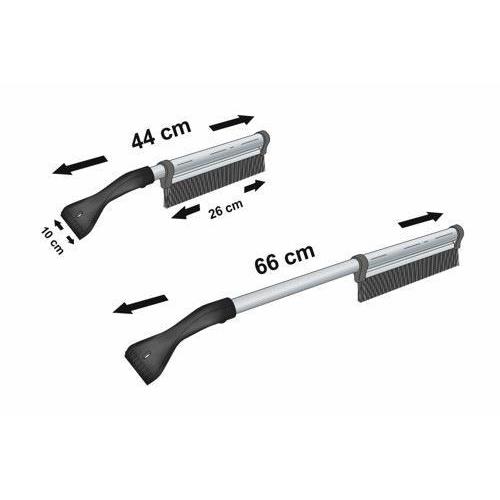 Smetáček se škrabkou a teleskopickou rukojetí o délce 4 - 6 cm, hliníková konstrukce. Ideální do zimního počasí. Díky výsuvné rukojeti vhodné o pro větší vozy - snadno lze odstranit sníh či námrazu z míst, kam s běžnou škrabkou nedosáhnete.