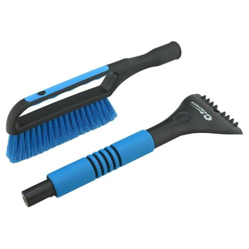 Praktická škrabka s koštátkem 2v1 o celkové délce 660 mm s možností rozdělení na dva samostatné, funkční nástroje. Šířka škrabky 110 mm zajistí pohodlné oškrábání námrazy z oken. Vrchní strana je doplněna vyvýšeninami, které usměrňují oškrábanou námrazu, případně je lze použít k rozbití větší vrstvy ledu. Košťátko délky 210 mm zabezpečí účinné a rychlé odmetání sněhu z vozidla. Celá konstrukce je vyrobena z odolného plastu a je doplněna měkkou pěnovou rukojetí v úchopové části škrabky. Rukojeť košťátka je opatřena pogumovaným madlem.