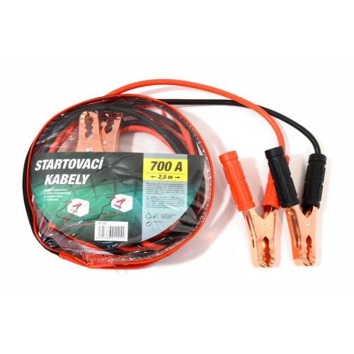 Klasické, barevně označené startovací kabely se svorkami na akumulátor. Max. proud 700A, délka 2,5 m. Uzavíratelné balení "zipper bag", snadné uložení startovacích kabelů do praktického na zip uzavíratelného obalu. Materiál CCA.