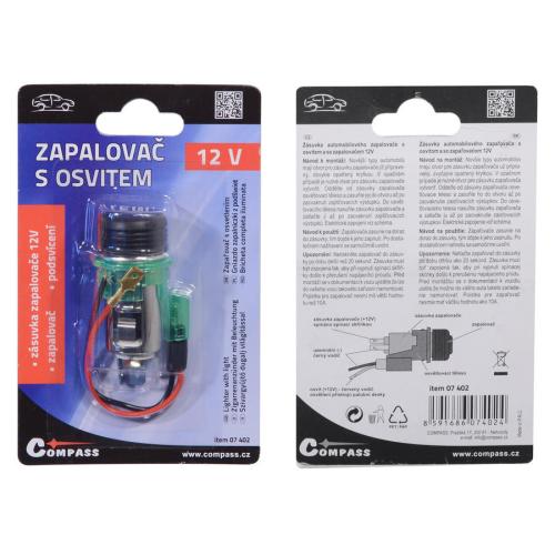 12VKovová zásuvka automobilového zapalovače s osvětlením včetně zapalovače. celý popis »