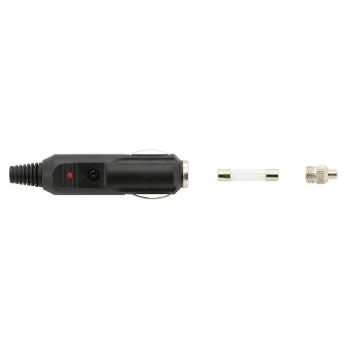 Univerzální zástrčka umožňuje připojení spotřebičů do standardní zásuvky zapalovače automobilu. Zástrčka je vybavena skleněnou pojistkou 5A. Její výměnu lze provést odšroubováním přední části pojistky.