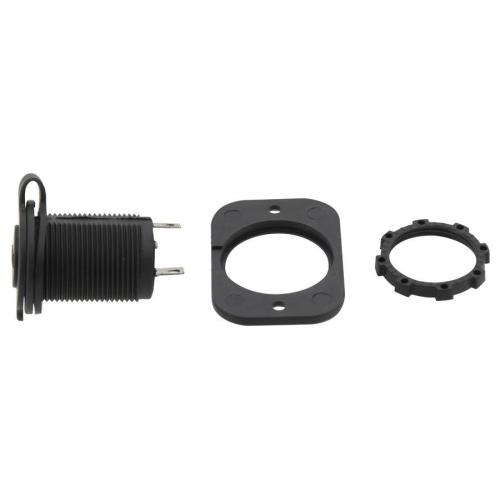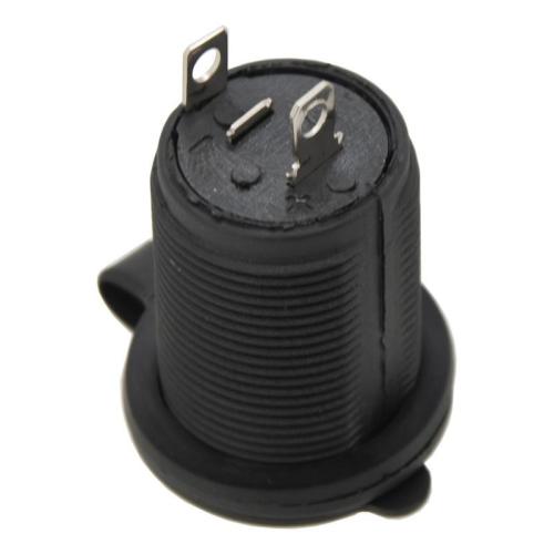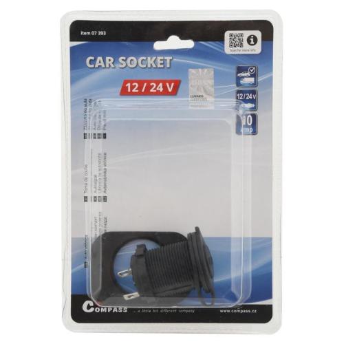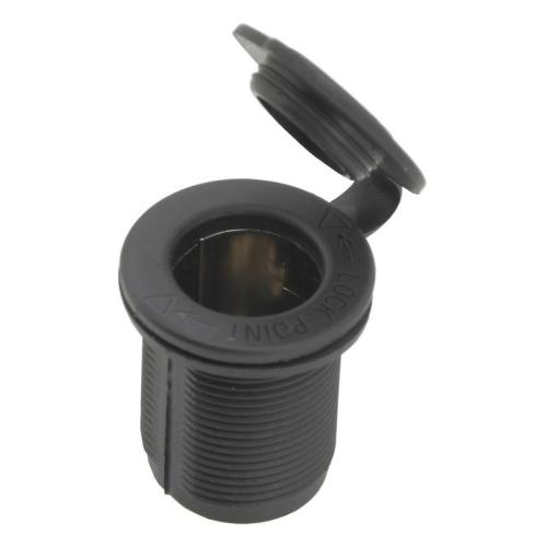 Zásuvka určená pro montáž do vozidel s napětím 12/24V. Slouží jako dodatečný slot napájení uvnitř vozidla, v zavazadlovém prostoru například pro autoledničku, osvětlení atp. Za zmínku stojí gumová krytka, která slouží jako ochrana při nepoužívání zásuvky. Montáž je jednoduchá a rychlá, zásuvka se umístí do předvrtaného otvoru na určeném místě a dotáhne se pomocí matice ze zadní strany, pro ještě jistější uchycení se může z přední strany přišroubovat pomocí dvou šroubů.