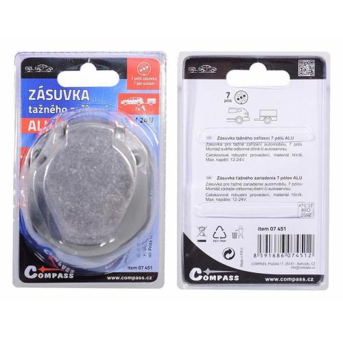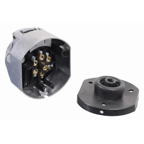 7-mi pólová zásuvka pro tažné zařízení automobilu z hliníku, norma DIN1724. Rozměr 9,5 x 4 x 5 cm.